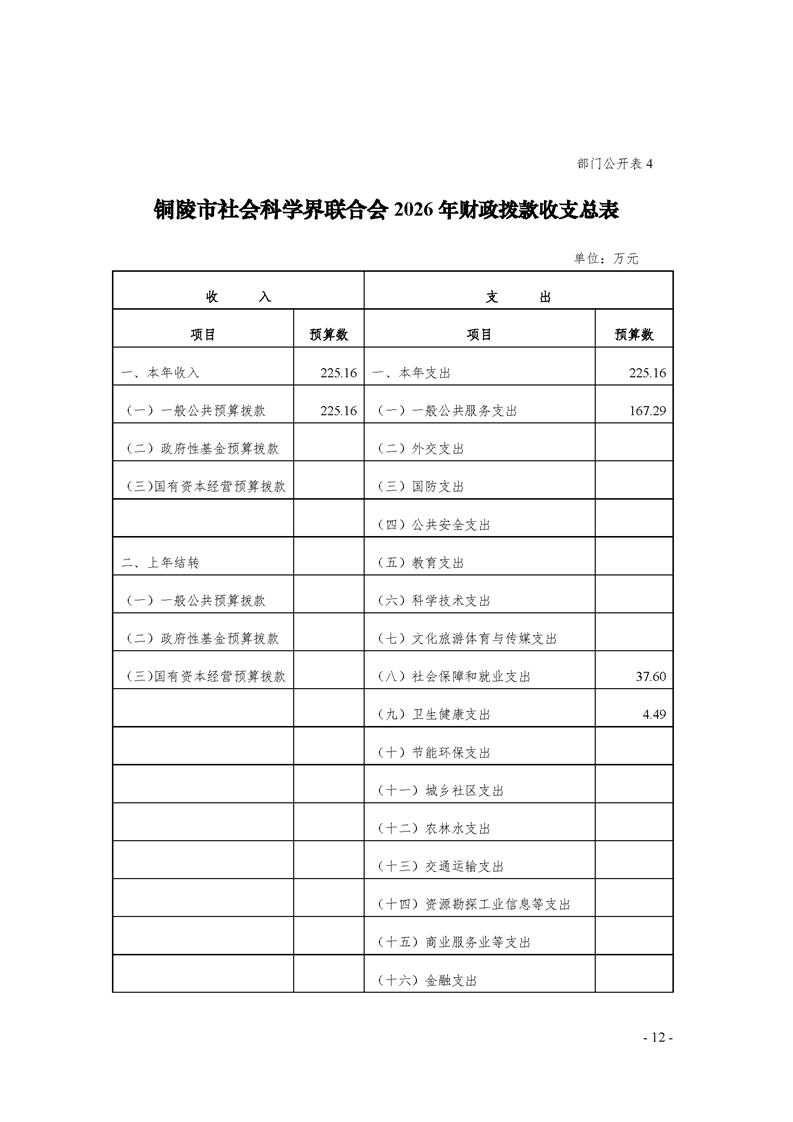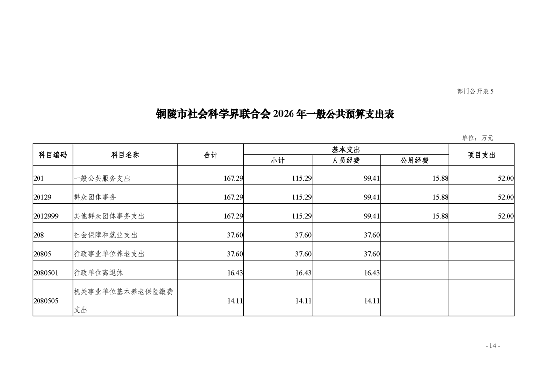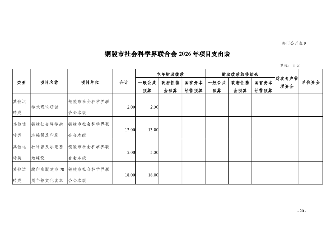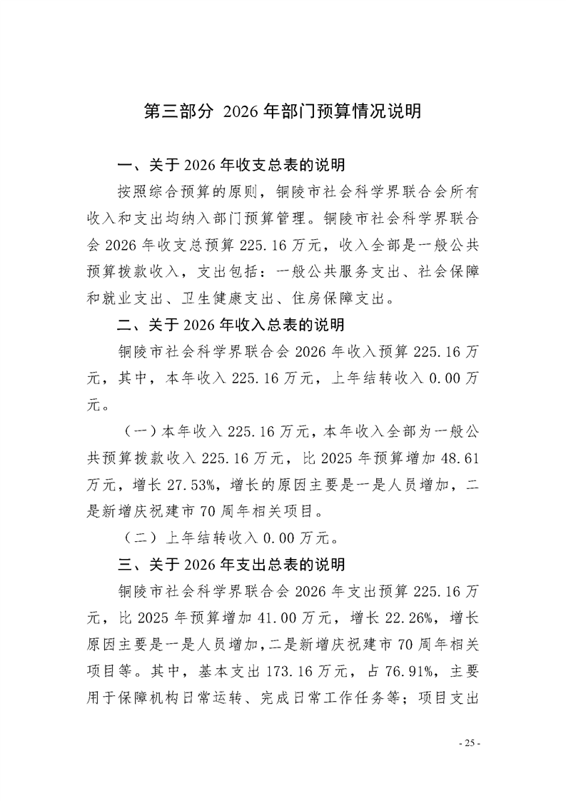 2026年铜陵市社会科学界联合会部门预算